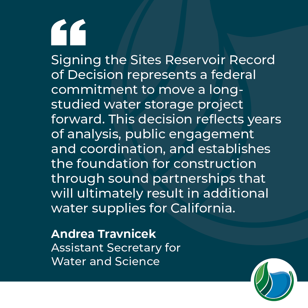 Today, the @bureau_of_reclamation issued their Record of Decision (ROD) for the Sites Reservoir Project, certifying that it meets all aspects of the National Environmental Policy Act (NEPA). With this decision, we can now leverage all available funding and move the project forward through the final planning stages and on to construction. Visit the link in our bio to learn more!